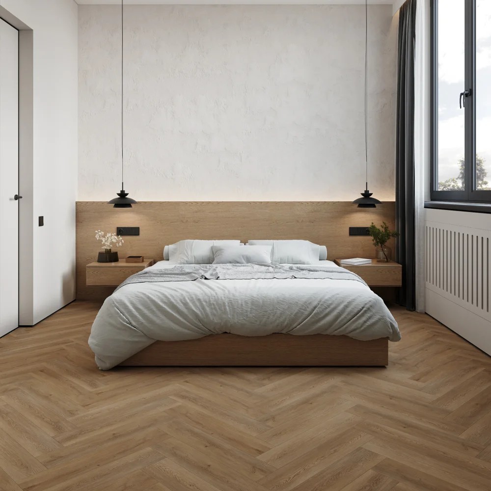 структура натурального дерева, тиснение в регистр, укладка паркета ёлочкой